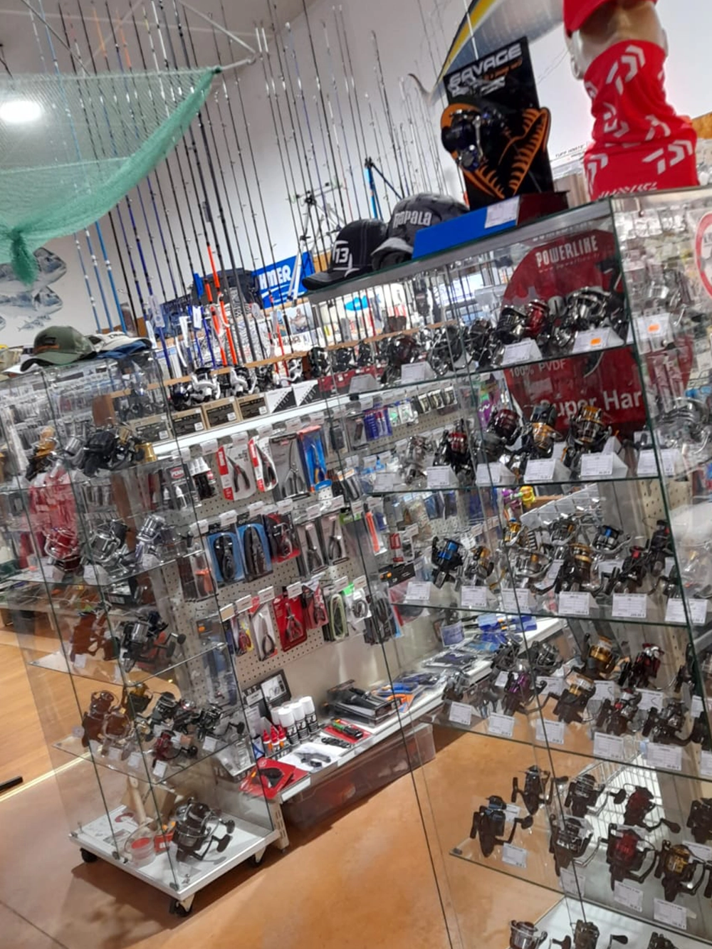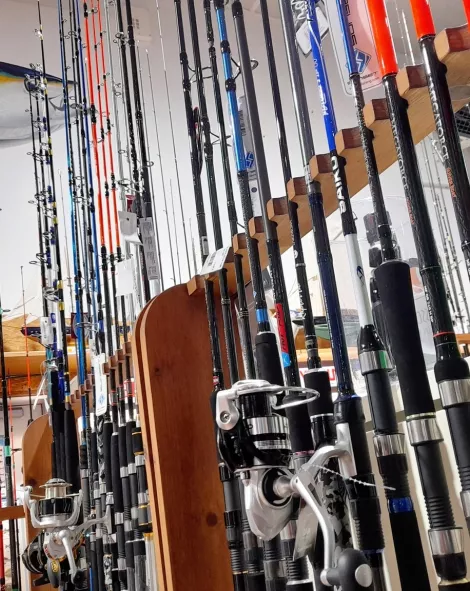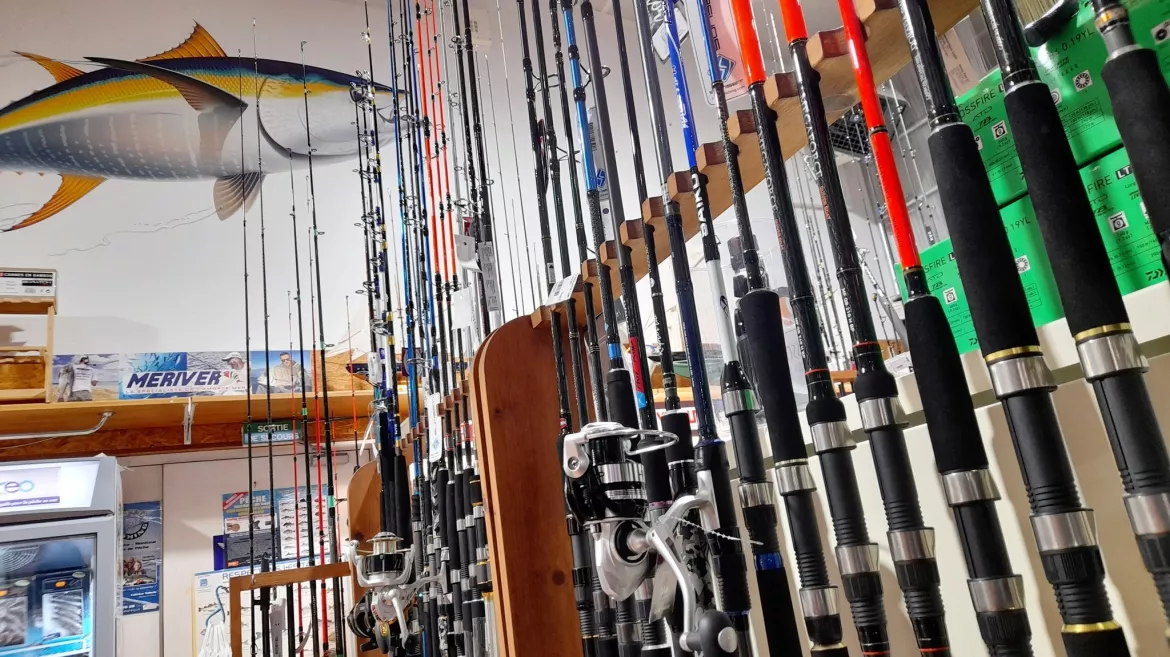 Cannes, moulinets, ensembles, tresse/nylon, leurres, bas de lignes, lignes montées, hameçons, support de cannes (surf ou bateau).