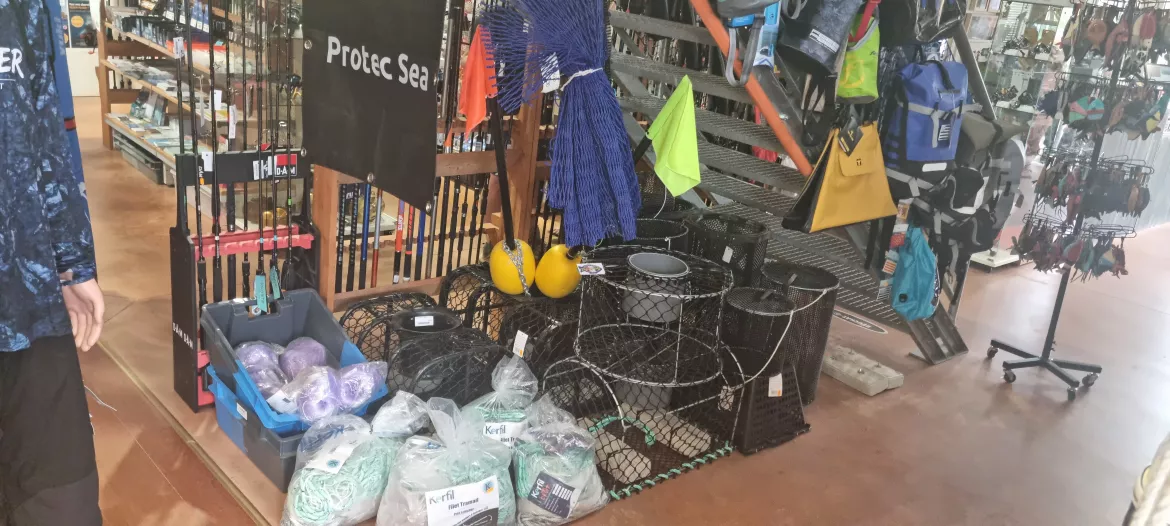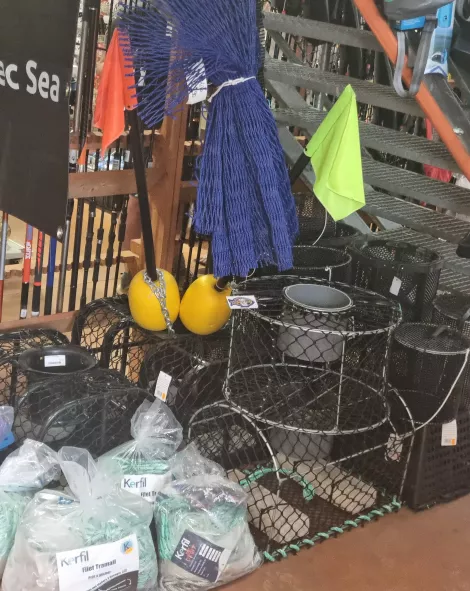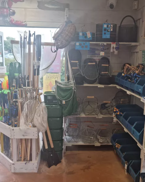Rhuys Pêche vous propose une large gamme d'équipements qui facilitera votre pêche : détroquoire, panier à coquillages ou à crevettes, piolet à huitres, griffe à palourdes, crochet à crabes, aiguilles à couteaux, havenets et haveneaux, épuisettes, gants…