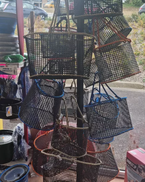 Casier à homards, crabes, crevettes, cloche à bulots, nasse à anguilles, filet droit / Tramail, palangre...