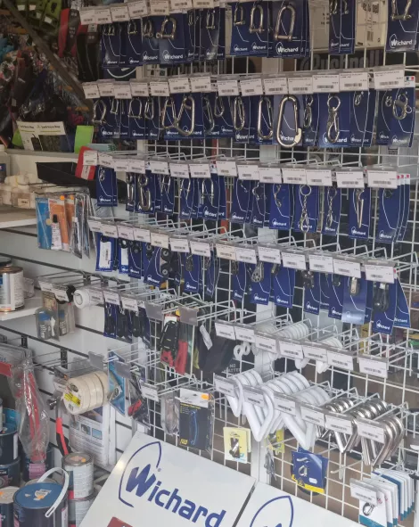 Pour vos besoins, un rayon accastillage propose un large choix de références en inox ou acier galvanisé.